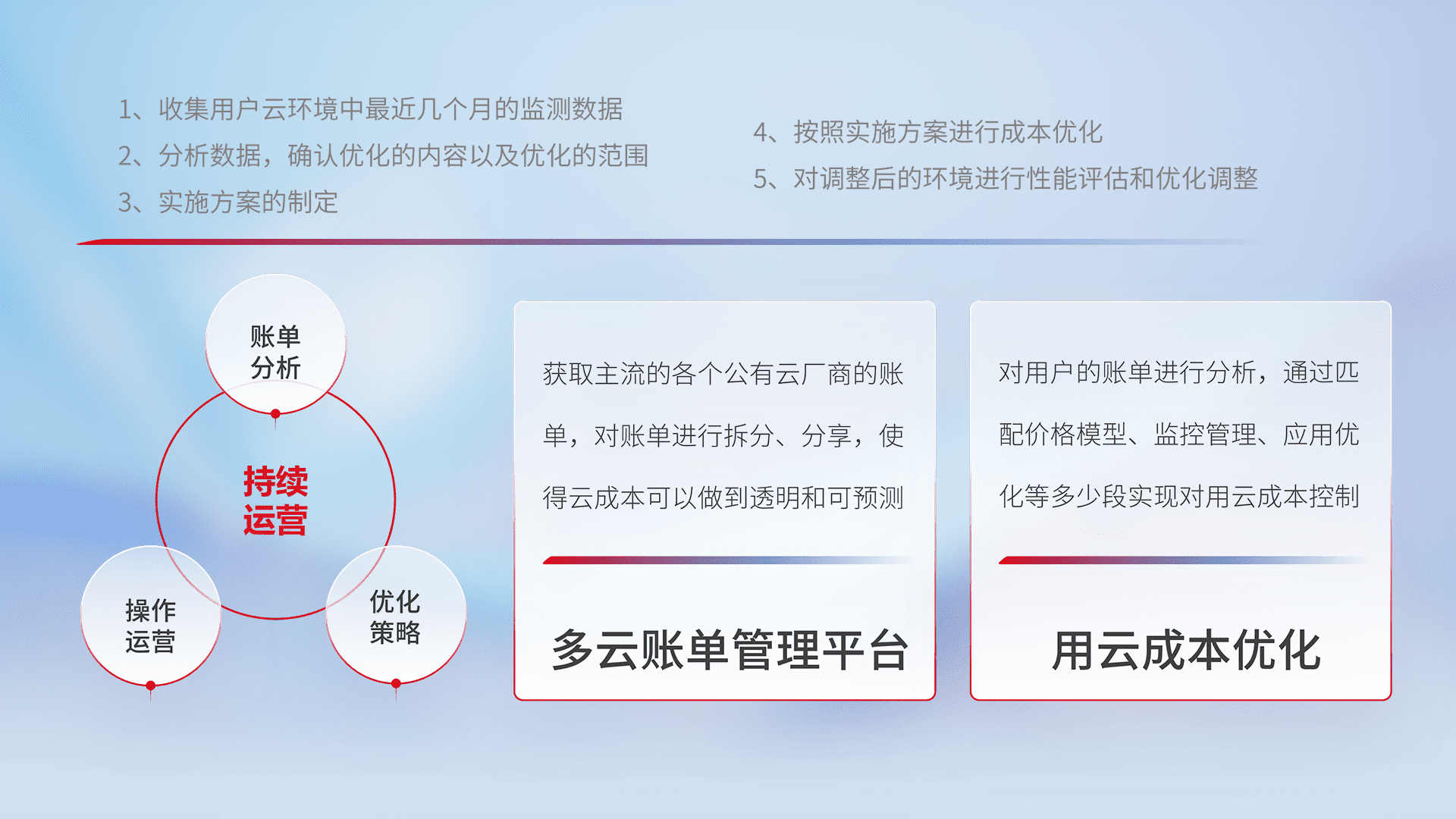 监控业务系统资源开销,,对资源的消耗精确计量,,实现费用的透明化管理,,不断提升资源使用率,,,,调整资源购买方式,,降低资源费用成本,,用云成本可预测、、、用云费用可优化,,,云资源配额有据可依。。